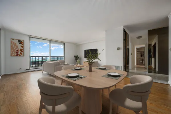 Welcome to Thorndale Beach South, one of Edgewater's most sought-after full-service lakefront buildings. This expansive 2-bedroom, 2-bath home offers breathtaking views of Lake Michigan and the shoreline, best enjoyed from the oversized private balcony. One long balcony looking north and east to Lake Michigan which can be accessed through multiple different rooms of the condo. Unit layout is both functional and comfortable, featuring forced-air heat, central air, and an attached garage parking space included in the price. Residents enjoy 24-hour door staff, on-site management, a fitness center, outdoor pool, party room, bike storage, and common laundry, all within a well-maintained building with strong reserves. It is completely owner occupied building, pet-friendly community with no rentals allowed, offering a quieter, more residential feel. Ideally located just steps from the lakefront, beach, and Red Line, with easy access to Edgewater's vibrant dining and cafe scene. Neighborhood favorites include Little Bad Wolf for comfort food and cocktails, m.henry for brunch and daytime fare, and Regalia for refined Italian dining. Coffee lovers will appreciate nearby staples like Metropolis Coffee Company, The Coffee Studio, and Loaves & Witches, while casual evenings are well spent at neighborhood spots like Burke's Public House and Lady Gregory's Irish Bar & Restaurant. With the HOA covering most utilities and services, this home offers effortless lakefront living in one of Chicago's most coveted Edgewater addresses. The kitchen and both of the bathrooms are dated and next owner can put their fingerprint on the property by updating to their desired aesthetics. Tons of room for updates and rehab if coveted.