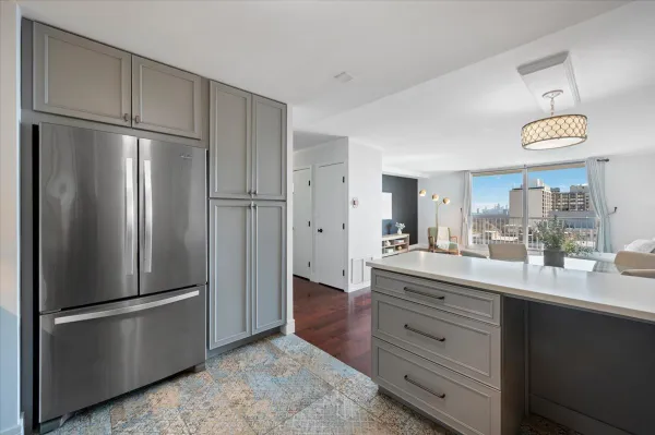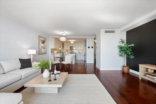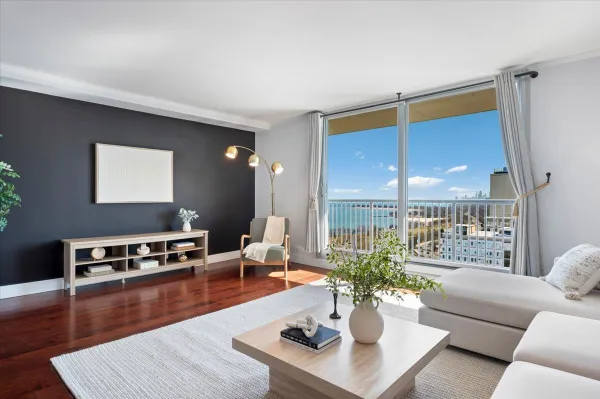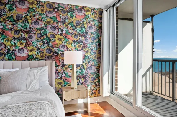 Panoramic lake and skyline views define this sought-after south-facing G tier residence on the 25th floor at 5855 N Sheridan, overlooking Hollywood Beach. A remarkable 30-foot private balcony spans the entire width of the home, delivering sweeping views of Lake Michigan, Lake Shore Drive, and the Chicago skyline - from glowing sunrises over the water to sparkling city lights at night. Inside, the home is freshly painted and thoughtfully curated with custom designer wallpaper, upgraded lighting, matte black fixtures, and a bold accent wall. Hardwood floors run throughout the living spaces.The updated kitchen features quartz countertops, elegant tile work, stainless steel appliances, and generous cabinetry. The refreshed bathroom offers heated floors, new tile shower, updated lighting, and custom storage. A spacious walk-in closet plus additional floor-to-ceiling storage (Space #98) provide exceptional storage for a one-bedroom. Solid core doors and quality finishes reflect meticulous care throughout. Full-amenity living includes 24-hour door staff, outdoor pool, fitness center, two expansive sundecks overlooking the lake, party room,receiving room, and on-site laundry. Monthly assessments of $878.25 include internet, basic cable, self-parking and use of all building amenities. One assigned garage parking space (#69) is included. Just steps to the lakefront trail, beaches, the Thorndale Red Line, Whole Foods, Loyola University, and neighborhood dining. Elevated lakefront living in one of Chicago's most desirable buildings.